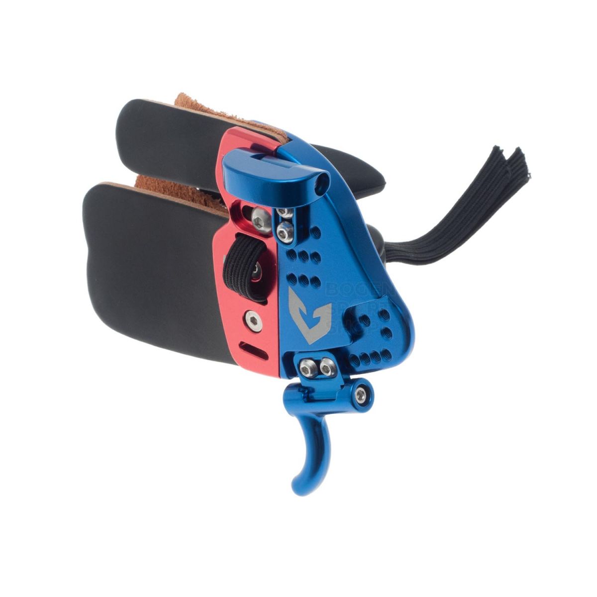 Diseño con diferentes ángulos apropiados para un buen estiramiento de la palma. Fabricada con piel de Cordovan. El amplio rango de ajuste permite a los arqueros trabajar con la posición natural de su mano. Ayuda a distribuir perfectamente la tensión entre los dedos para obtener condiciones de disparo óptimas.
