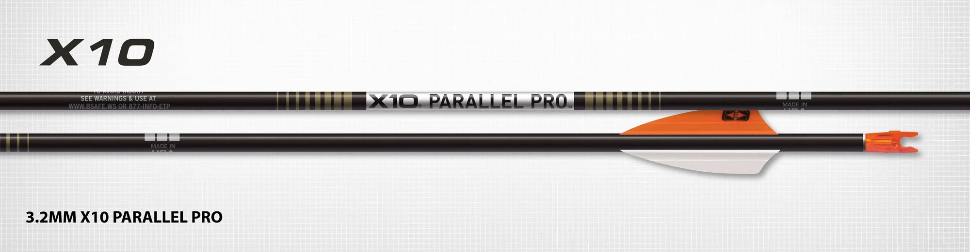 Con el debut olímpico del tiro con arco compuesto, el X10 Parallel Pro de 3,2 mm está en posición de ganar. Diseñado para competiciones compuestas al más alto nivel y competidores recurvos que prefieren un diseño paralelo. El 3.2 Parallel Pro está optimizado para esto, el nivel más alto de competencia, con el mismo perfil de microdiámetro de 3,2 milímetros que pionero el legendario Easton X10, el principal mango de flecha recurvo de competición del mundo. Ofrece una mayor eficiencia balística — con mayor retención de energía y momento en larga distancia y menos deriva del viento — convirtiéndolo en la flecha exterior de largo alcance de referencia para uso general.