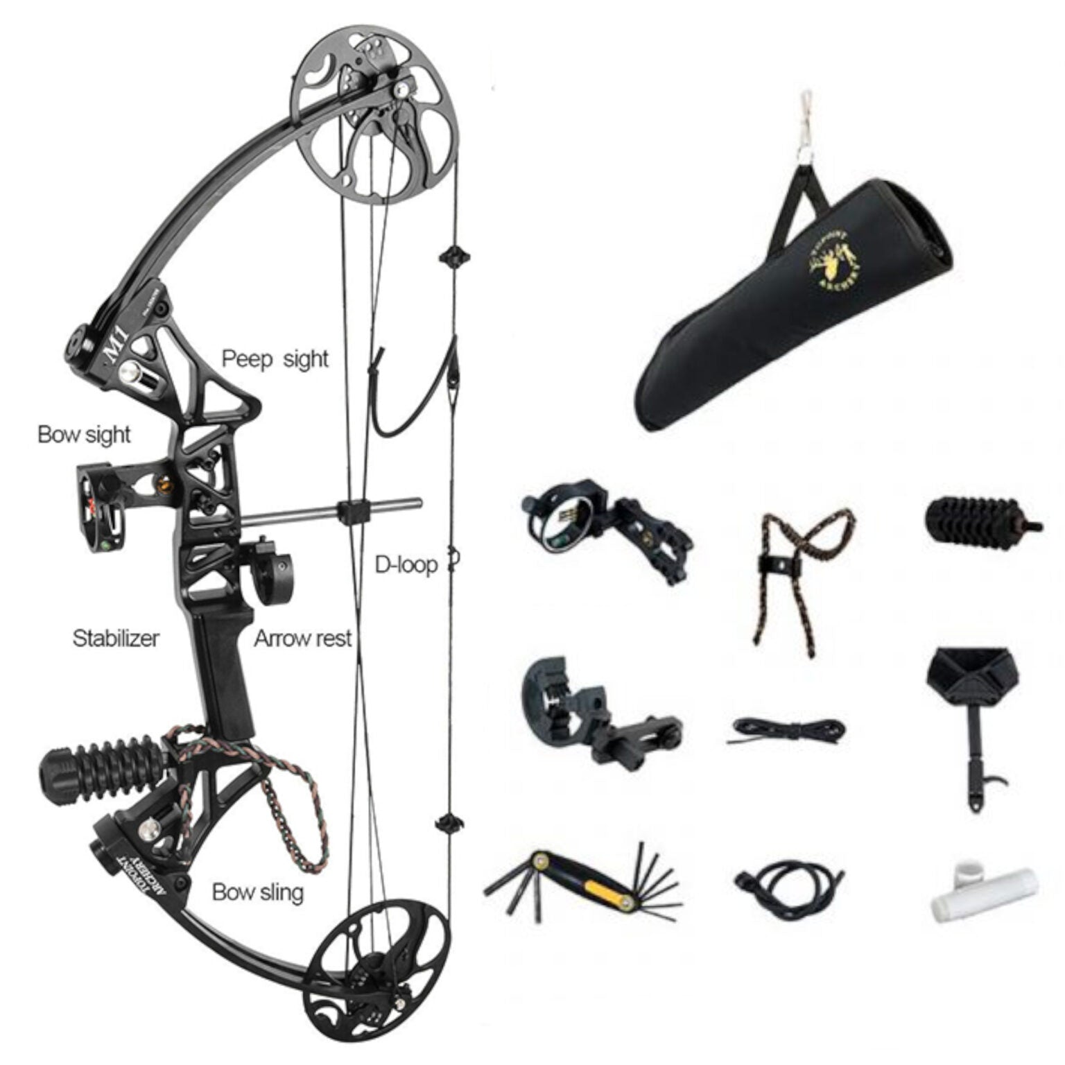 El Arco Compuesto M1 de Topoint es un arco compacto y ligero de 28″ de largo y 3,31 lbs (1,5 kgs) de peso, ideal para iniciarse en el tiro o en la caza con arco.