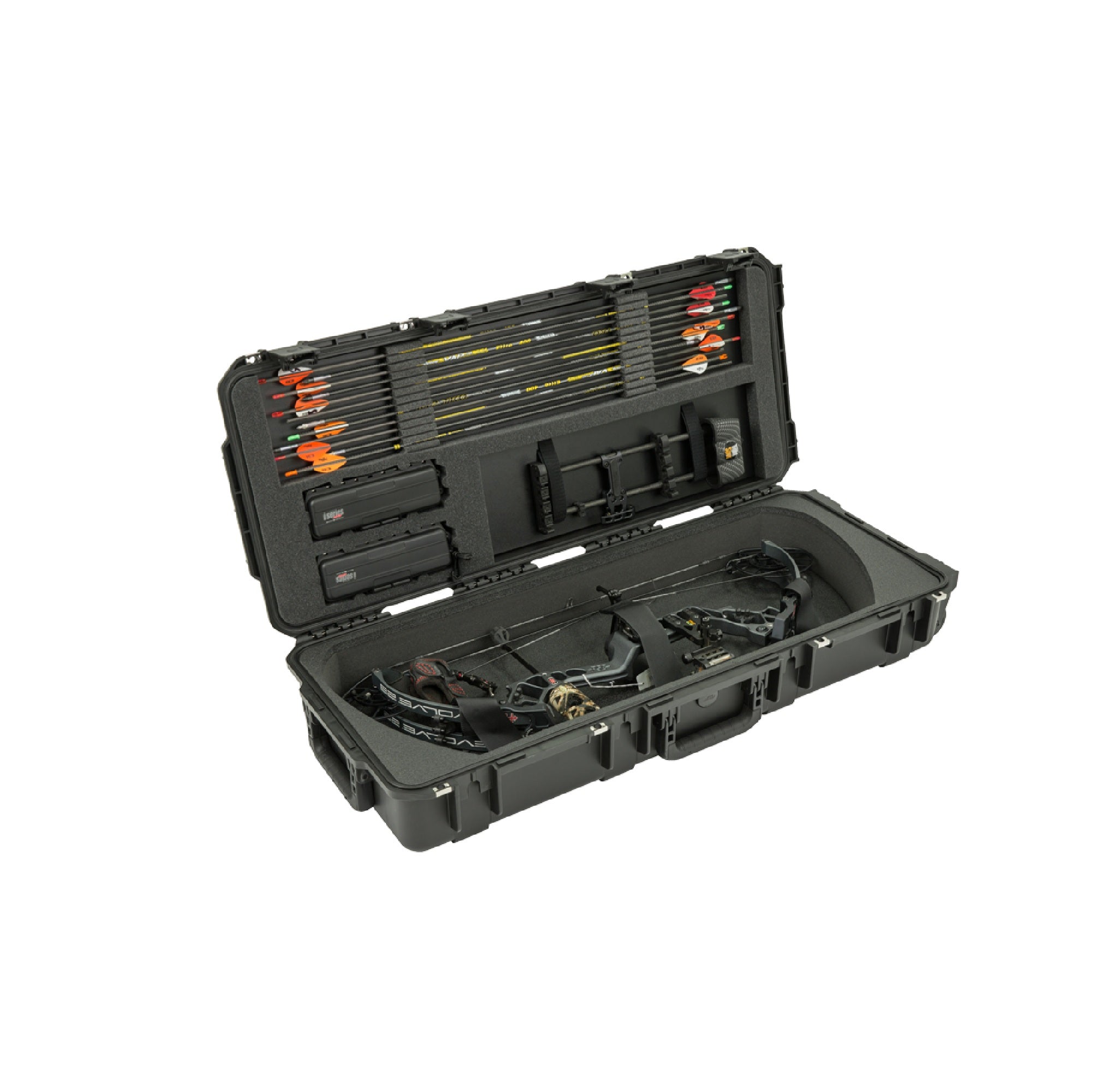 - Custom insert for single take-down risers, two sets of limbs and arrows