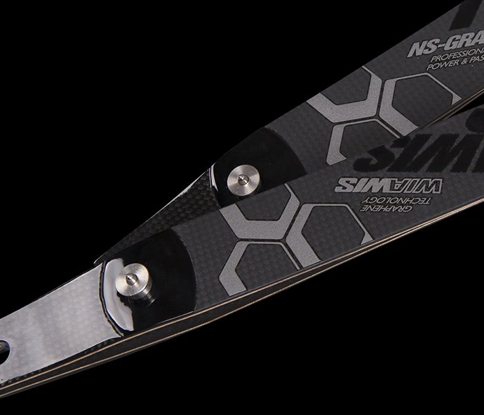 Las palas WIAWIS NS GRAPHENE mejoran el rendimiento y la estabilidad, lo que disminuye el movimiento de cuerda más corto y más estrecho cuando se dispara una flecha.