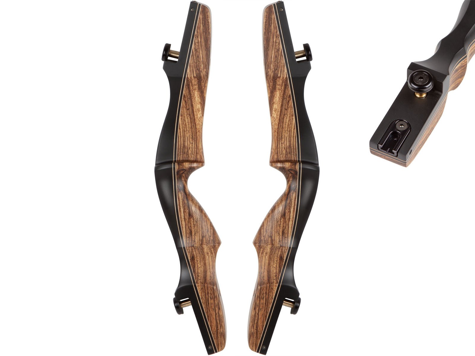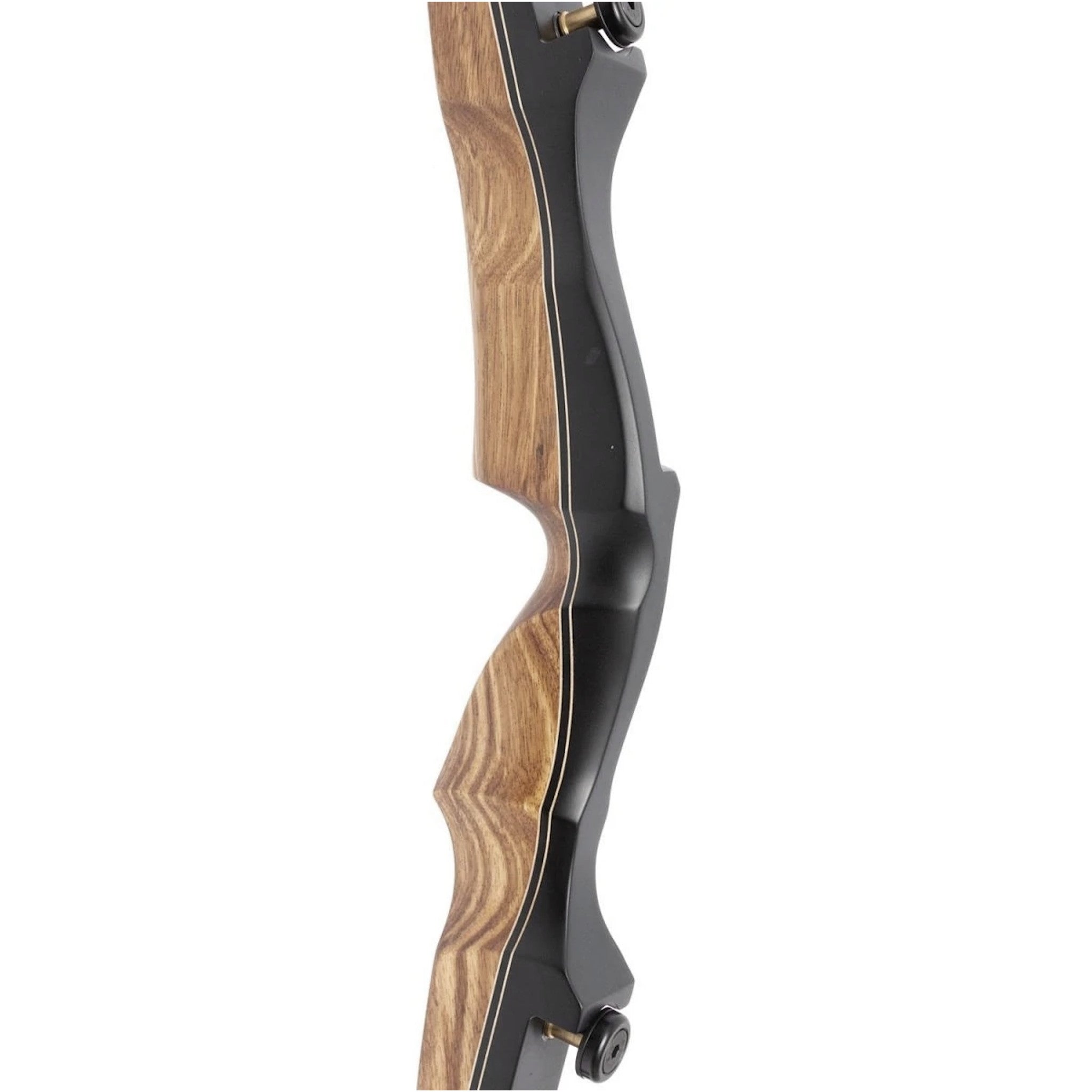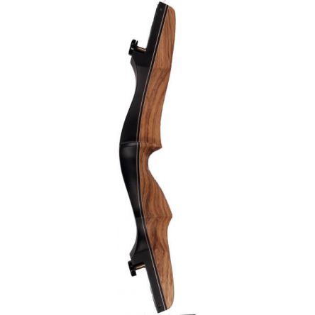 Riser laminado de madera de arce con atractivas vetas de madera. Cuenta con un cómodo agarre, diseñado para una buena posición de la mano. Utiliza el sistema ILF (International Limb Fit) que permite gran compatibilidad con variedad de palas.