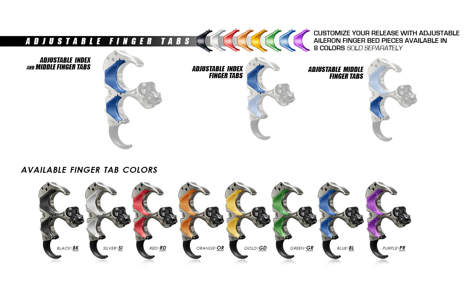 El mango es liso para los primeros dedos para facilitar la rotación, y ranurado hacia el dedo anular para el agarre necesario durante la activación de la tensión de la espalda. El Aileron HBC Flex se puede pedir en una variedad de colores o las camas de los dedos de los alerones se pueden intercambiar en los dedos índice, medio o un juego de dedos índice / medio para que pueda personalizar completamente su Aileron HBC Flex a su gusto.